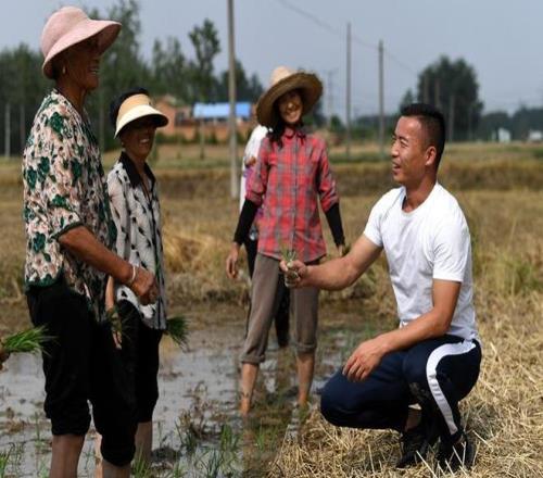 “三夏”时节戴虎在田间与村民们交流。受访者供图