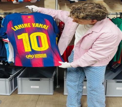 附近还有哈里-凯恩与贝林厄姆穿过并签名的球衣,让人不禁想象它们背后的价值。最吸引我的是一件由亚马尔穿过并签名的球衣。这类球衣一旦上架,往往能拍出不小的数字,这并不令人意外。随着足球纪念品甚至整个体育纪念品市场的不断升温,球衣、球鞋、收藏卡等物品的价格屡屡飙升至数万英镑。