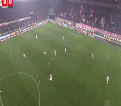 第84分钟,凯恩后场长传,迪亚斯横传助攻卡尔低射破门!科隆1-3拜仁